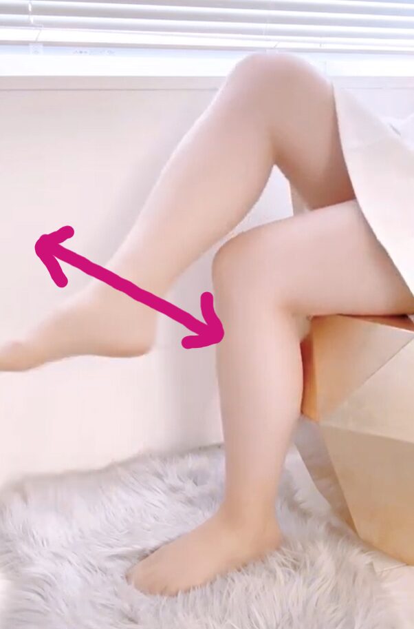 ①足を組むように、反対の膝の上にふくらはぎを乗せる。