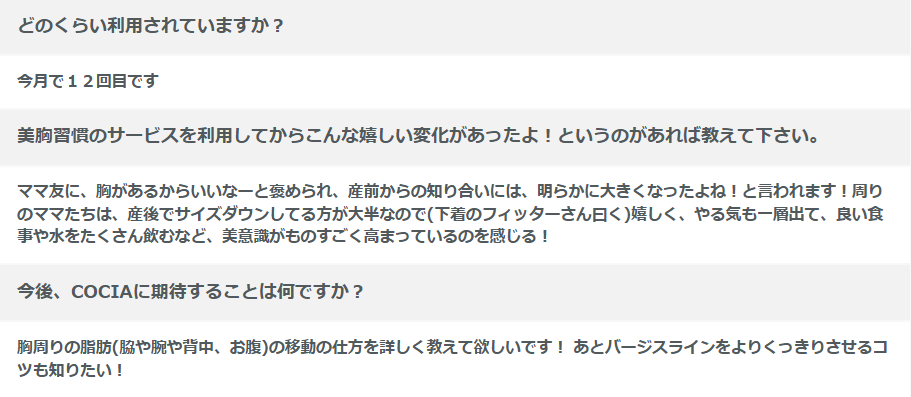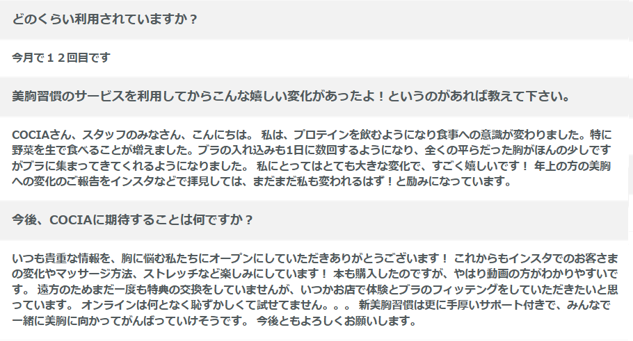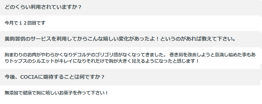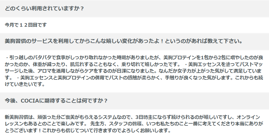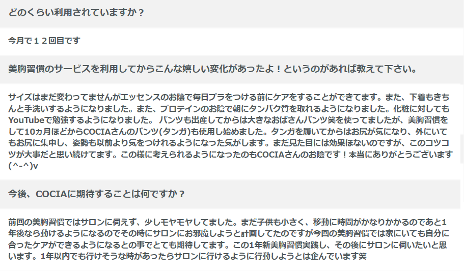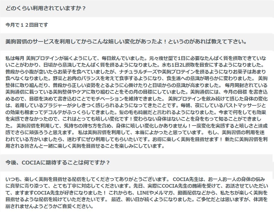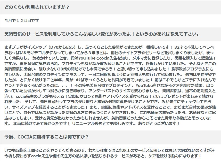 美胸習慣の利用者さんからの口コミ