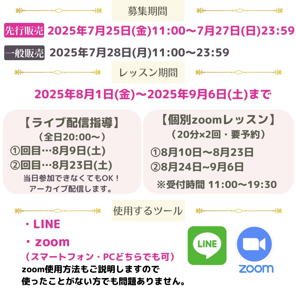 その膨大なデータと私自身の経験を掛け合わせたメソッドを、2回のオンラインライブレッスンでがっつりお伝えしていきます!