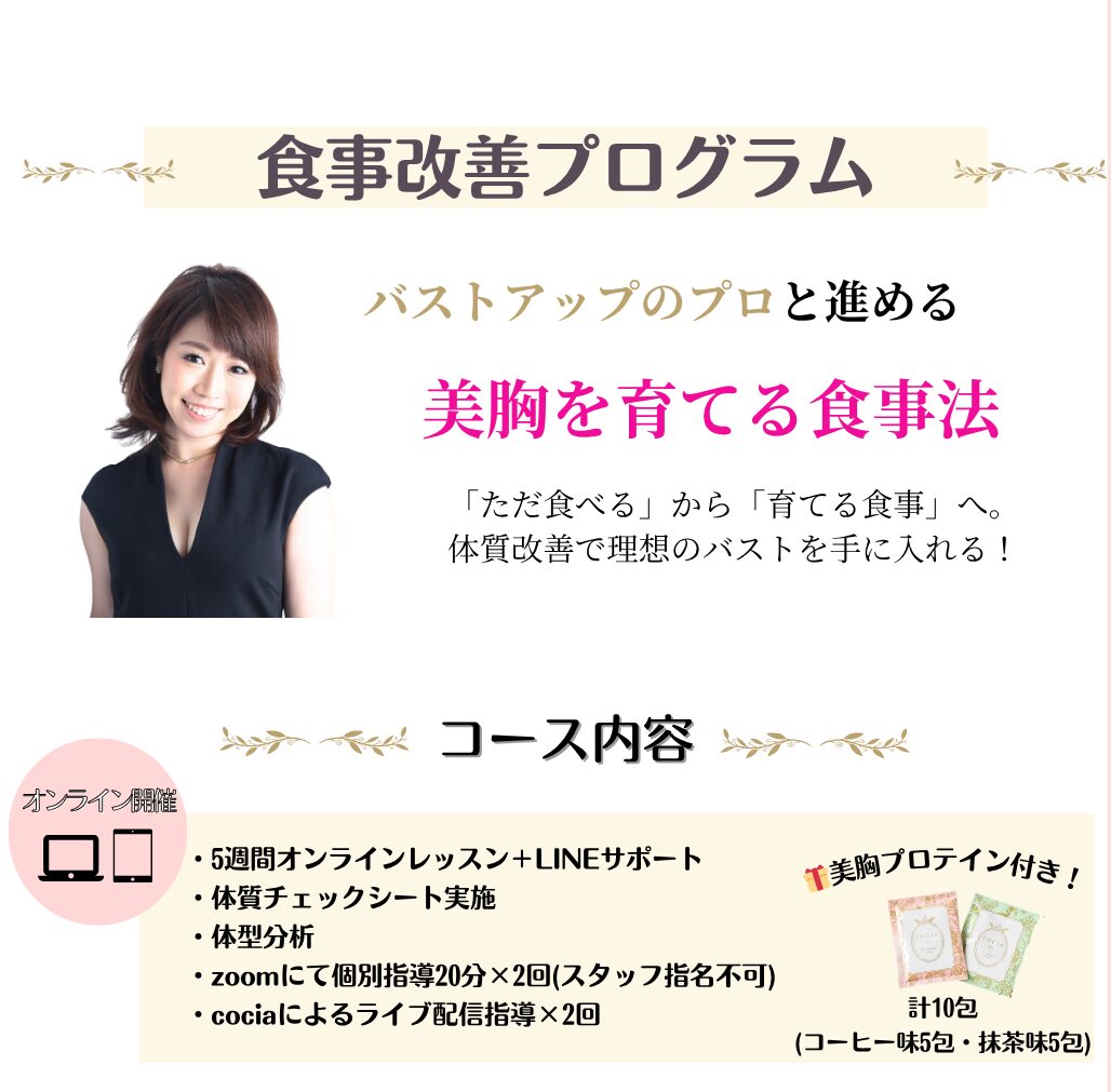 - 食事=苦痛から、食事=バストの楽しみへ!