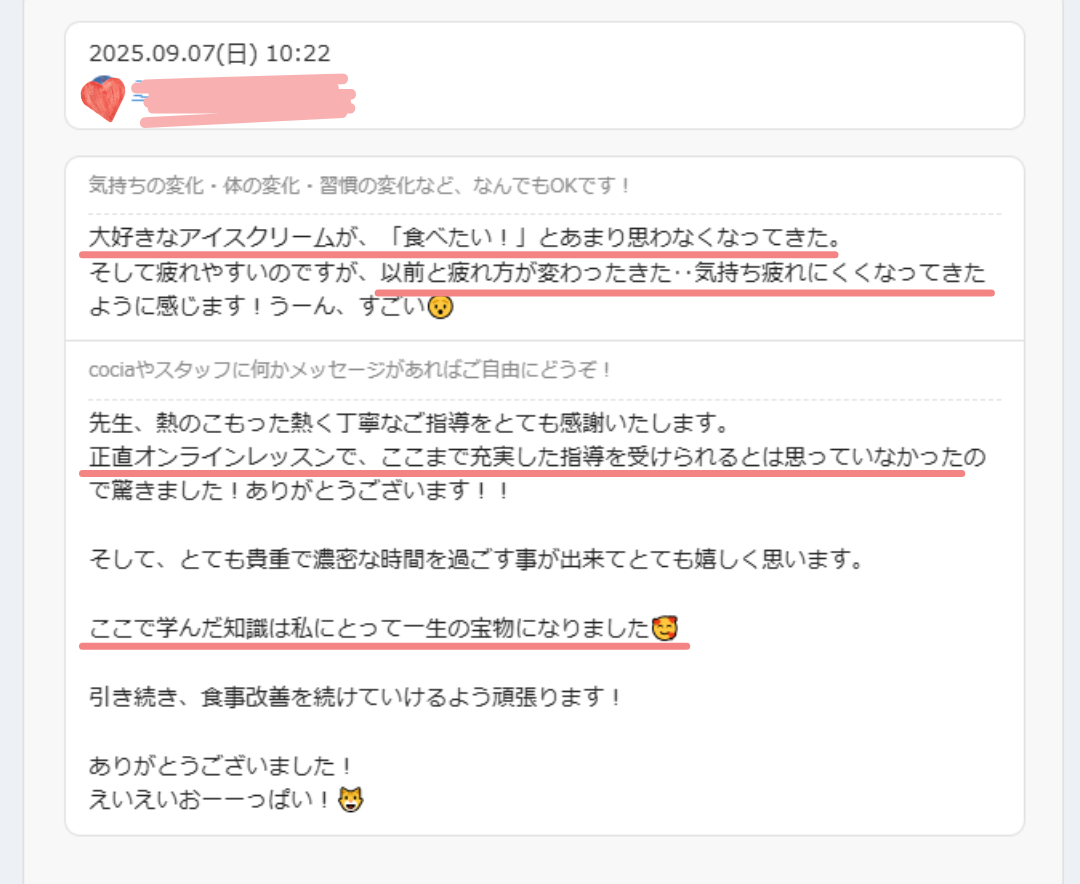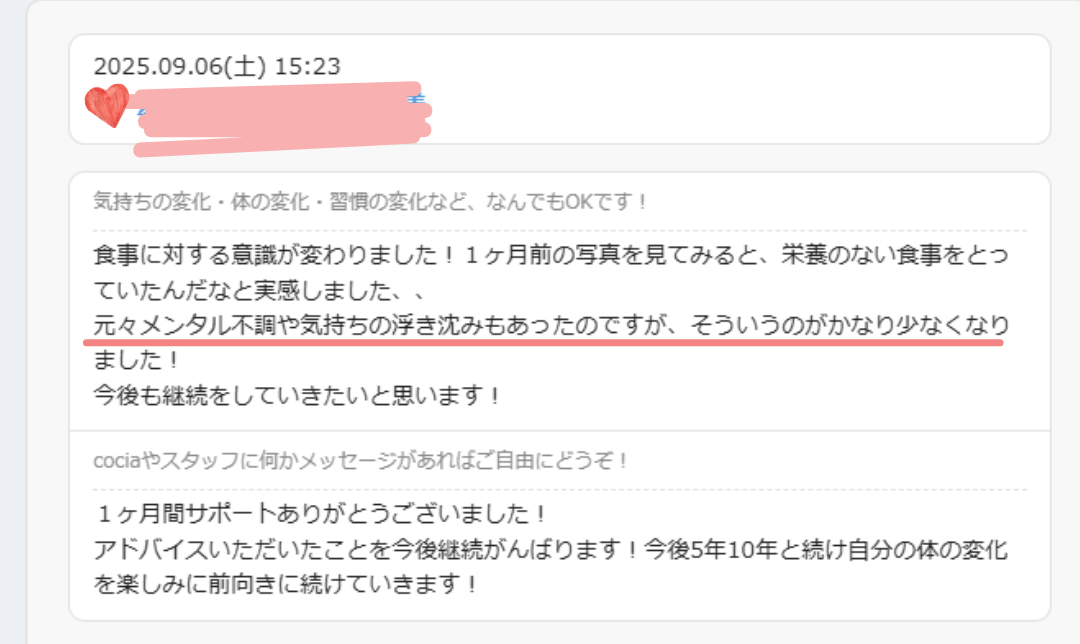 講座や個別指導でお話した内容をしっかりと実践してくださった方々は、5週間という短期間でも体質に変化を実感されました✨