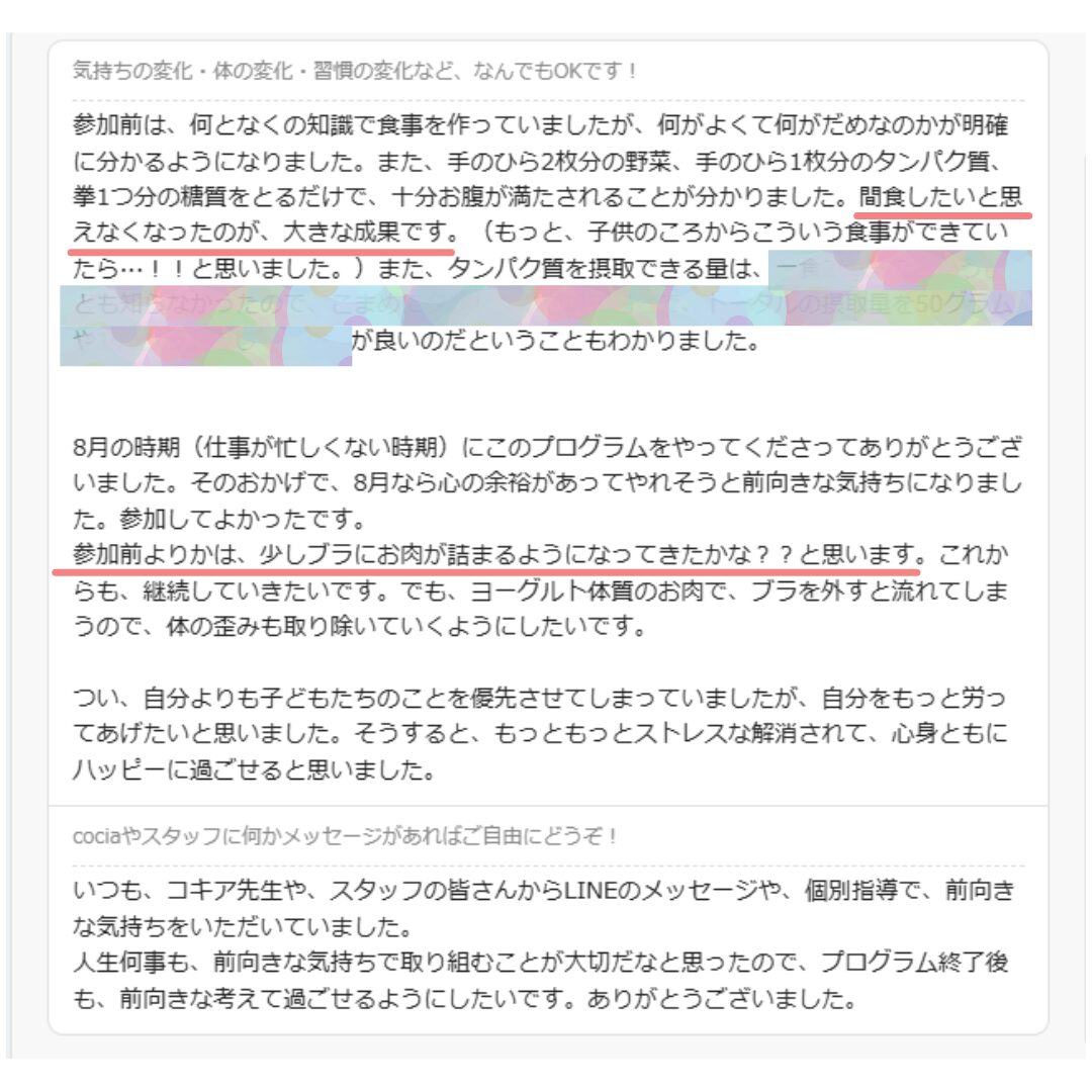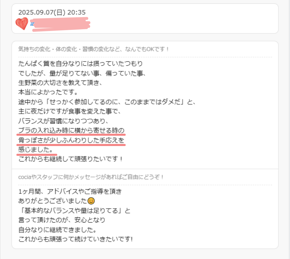 睡眠の質がぐっとあがったというK様。自己肯定感アップでよりお胸が育ちやすい状態に