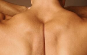そのため、上半身の筋肉が非常に発達しており、特に肩甲骨を寄せる動きが強く、背中ががちがちに固まっていました。