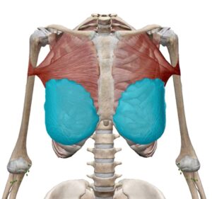 赤い部分が筋肉、青い部分がお胸の場所です。