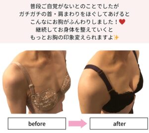 施術後は、バストがふっくら立ち上がり、背中のこわばりも取れてなめらかに。