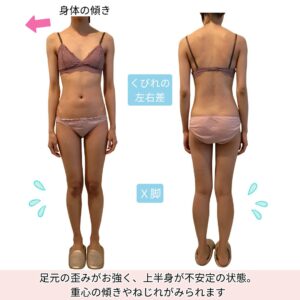 特に足はX脚で、当サロンでいう「足首O脚」。