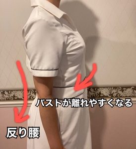 骨盤が前傾することで肋骨が開き、バストが横に流れやすくなります。