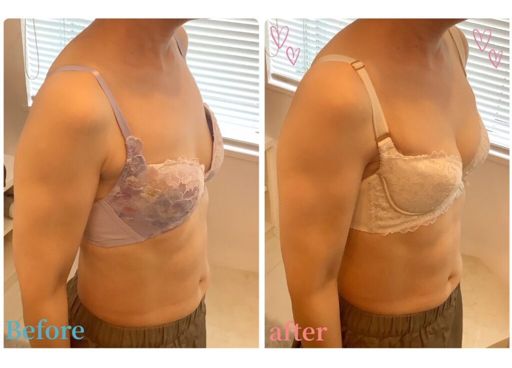 T様は介護職というお仕事柄、動きも多いかと思いますので、お胸のお肉も逃げやすいかと思います💦